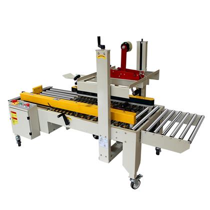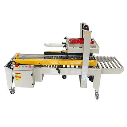 十字封箱機(jī)是一款組合型設(shè)備,主要是采用我們常用的半自動(dòng)封箱機(jī)或折蓋封箱機(jī)完成一字封箱,然后通過(guò)側(cè)推機(jī)構(gòu)將紙箱進(jìn)行90°轉(zhuǎn)向,然后進(jìn)入半自動(dòng)封箱機(jī)完成十字封箱包裝。