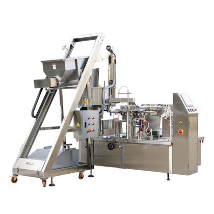 2.旋轉(zhuǎn)全自動(dòng)給袋式真空包裝機(jī)由兩種分離的旋轉(zhuǎn)式機(jī)體組成(分別為充填系統(tǒng)和真空系統(tǒng)).充填系統(tǒng)為間歇式旋轉(zhuǎn)運(yùn)轉(zhuǎn),真空系統(tǒng)為連續(xù)式旋轉(zhuǎn)運(yùn)動(dòng)。