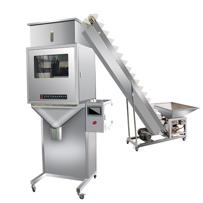 可與斗式送料機(jī)、封口機(jī)組成灌裝流水線。